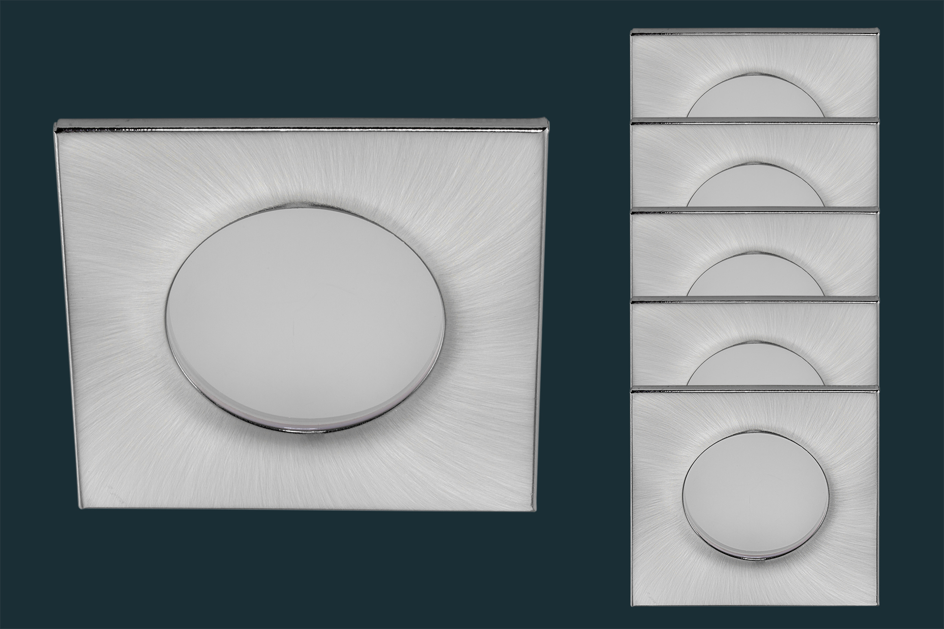5er Set LED Einbaustrahler FLOOD IP44, eckig, matt-chrom