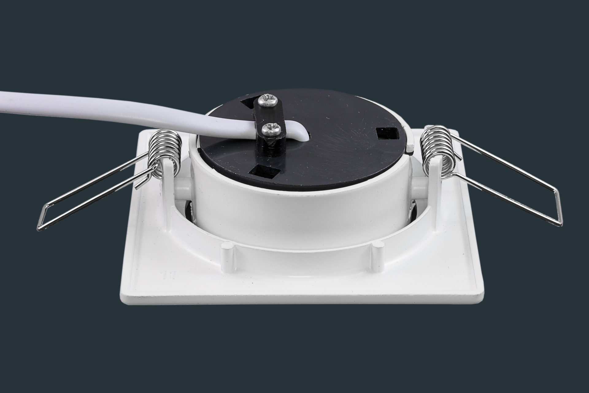 Durch die eckige Bauform der Grundplatte mit einem Kantemaß von 84 mm ist dieser Einbaustrahler ein echter Hingucker in jedem Raum und erzeugt ein modernes Ambiente.