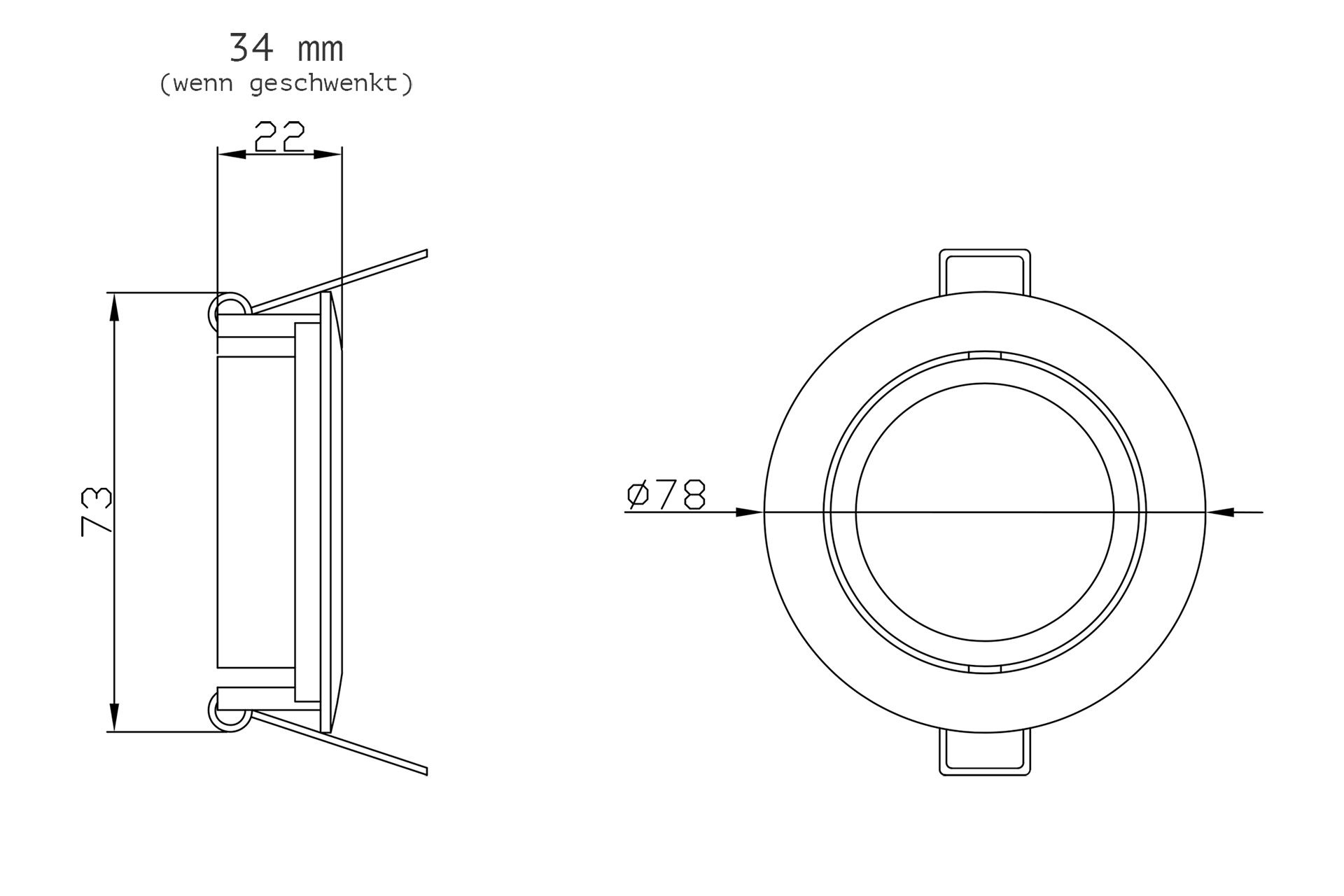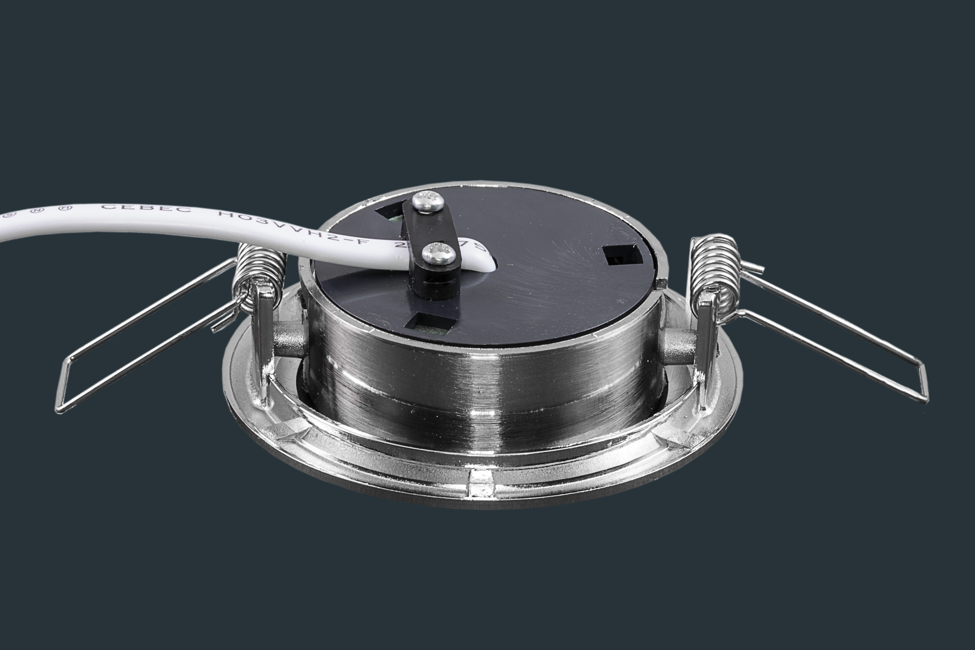 Durch die runde Grundplatte mit einem Durchmesser von 78 mm ist dieser Einbaustrahler nach Einbau nicht von einem klassischen Modell zu unterscheiden und fügt sich perfekt in jedem Raum ein.