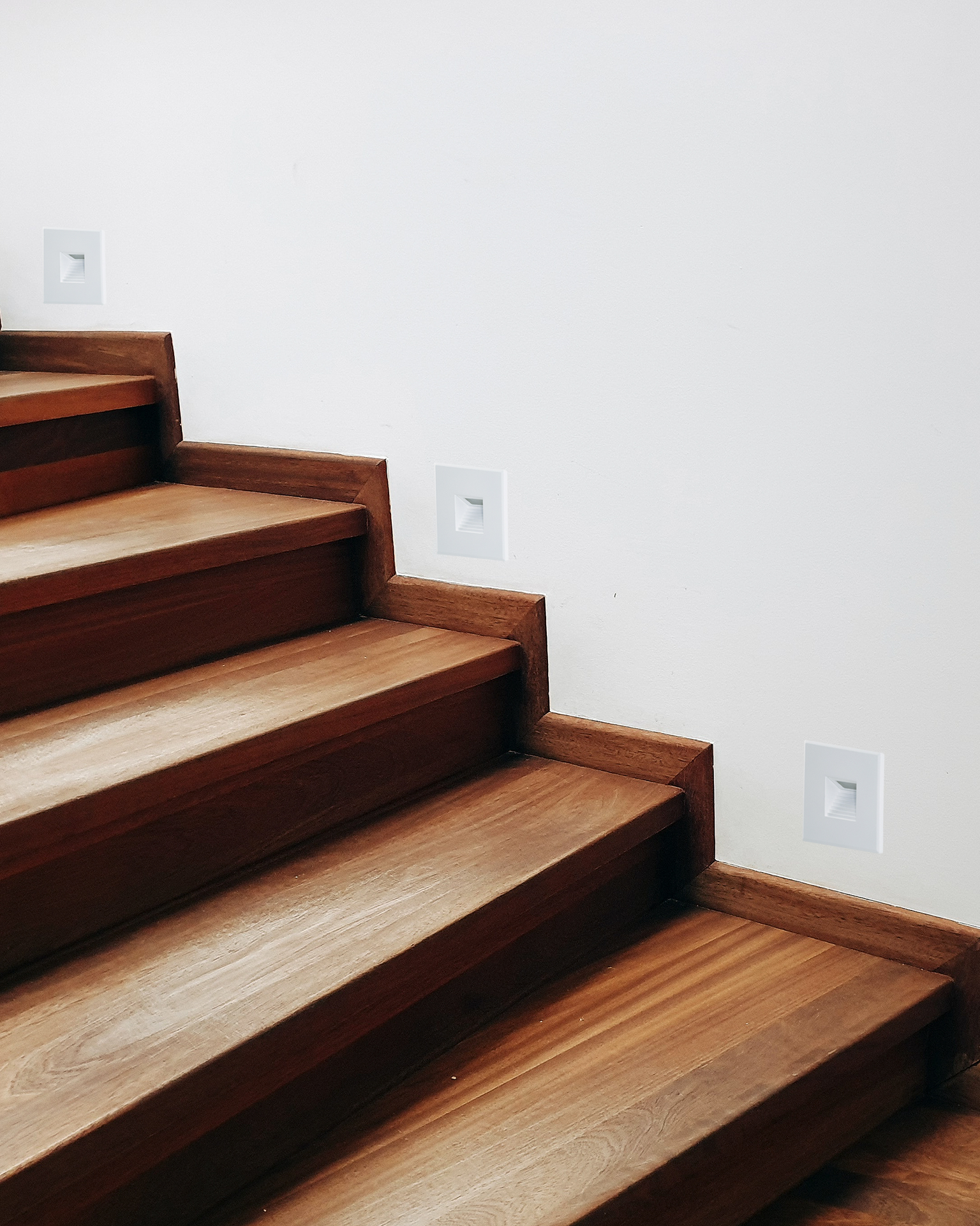 Der Körper aus Aluminium, zusammen mit der hochwertigen Pulverbeschichtung von DuPont macht diese Treppenleuchten besonders. Ein ausgeklügeltes Design und mitgelieferte Dichtungen sorgen für Wasserdichtigkeit, so dass die Leuchte auch für den Außenbereich oder Feuchträume geeignet ist (IP54).